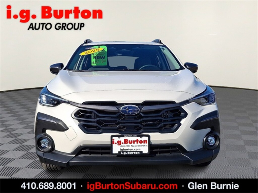 Not all customers will qualify for all rebates and incentives. All conditions are subject to credit approval. While we make every effort to ensure the data listed here is correct, there may be instances where rebates, incentives, options, or vehicle features may be listed incorrectly. Please contact the dealer to verify availability, payment, price, and options. Dealer cannot be held liable for omissions or errors prior to sale. Stock OEM pictures may not represent the actual vehicle (Options, colors, trim, and body style may vary). Specifications, features, safety, and warranty data are based on what is available as standard specs/features per trim level, for the designated model year and may not apply to vehicles with added packages or options. Dealer-installed options may include additional fees. Vehicles may be in transit to i.g. Burton Subaru of Glen Burnie, please call to verify availability. MSRP (Manufacturer's Suggested Retail Price) is not equivalent to the dealer's asking price. Final sales price INCLUDES DESTINATION AND DELIVERY CHARGES. Taxes, tags, title, registration, and $800 dealer documentation fees (not required by law) are extra. For gasoline, diesel, and hybrid fueled vehicles, MPG City/Hwy is the combined fuel economy. It is a weighted average that is calculated by weighting the city miles-per-gallon value by 55% and the highway miles-per-gallon value by 45%. It provides a quick and easy comparison of fuel economy across vehicles. EPA-estimate metric: these are contingent on ideal conditions within a lab. Real-world situations such as carrying passengers or cargo, using climate control, driving style, and ambient temperatures can affect actual metrics.
