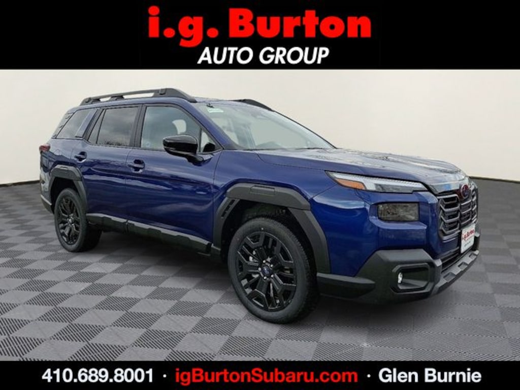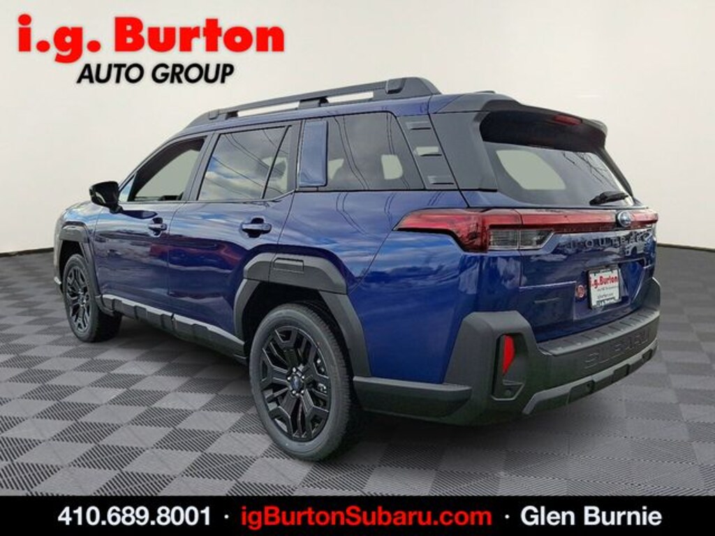 Not all customers will qualify for all rebates and incentives. All conditions are subject to credit approval. While we make every effort to ensure the data listed here is correct, there may be instances where rebates, incentives, options, or vehicle features may be listed incorrectly. Please contact the dealer to verify availability, payment, price, and options. Dealer cannot be held liable for omissions or errors prior to sale. Stock OEM pictures may not represent the actual vehicle (Options, colors, trim, and body style may vary). Specifications, features, safety, and warranty data are based on what is available as standard specs/features per trim level, for the designated model year and may not apply to vehicles with added packages or options. Dealer-installed options may include additional fees. Vehicles may be in transit to i.g. Burton Subaru of Glen Burnie, please call to verify availability. MSRP (Manufacturer's Suggested Retail Price) is not equivalent to the dealer's asking price. Final sales price INCLUDES DESTINATION AND DELIVERY CHARGES. Taxes, tags, title, registration, and $800 dealer documentation fees (not required by law) are extra. For gasoline, diesel, and hybrid fueled vehicles, MPG City/Hwy is the combined fuel economy. It is a weighted average that is calculated by weighting the city miles-per-gallon value by 55% and the highway miles-per-gallon value by 45%. It provides a quick and easy comparison of fuel economy across vehicles. EPA-estimate metric: these are contingent on ideal conditions within a lab. Real-world situations such as carrying passengers or cargo, using climate control, driving style, and ambient temperatures can affect actual metrics.